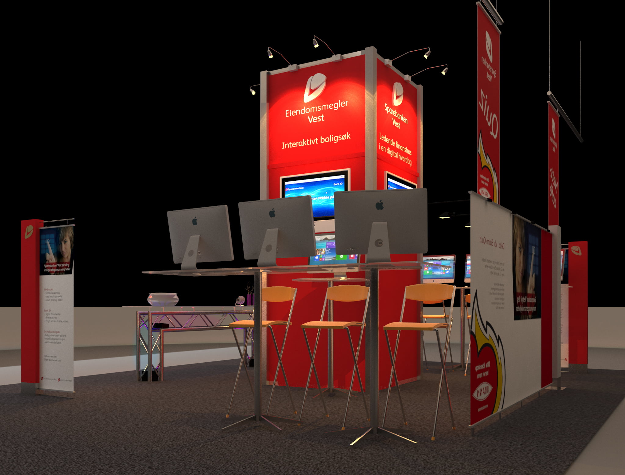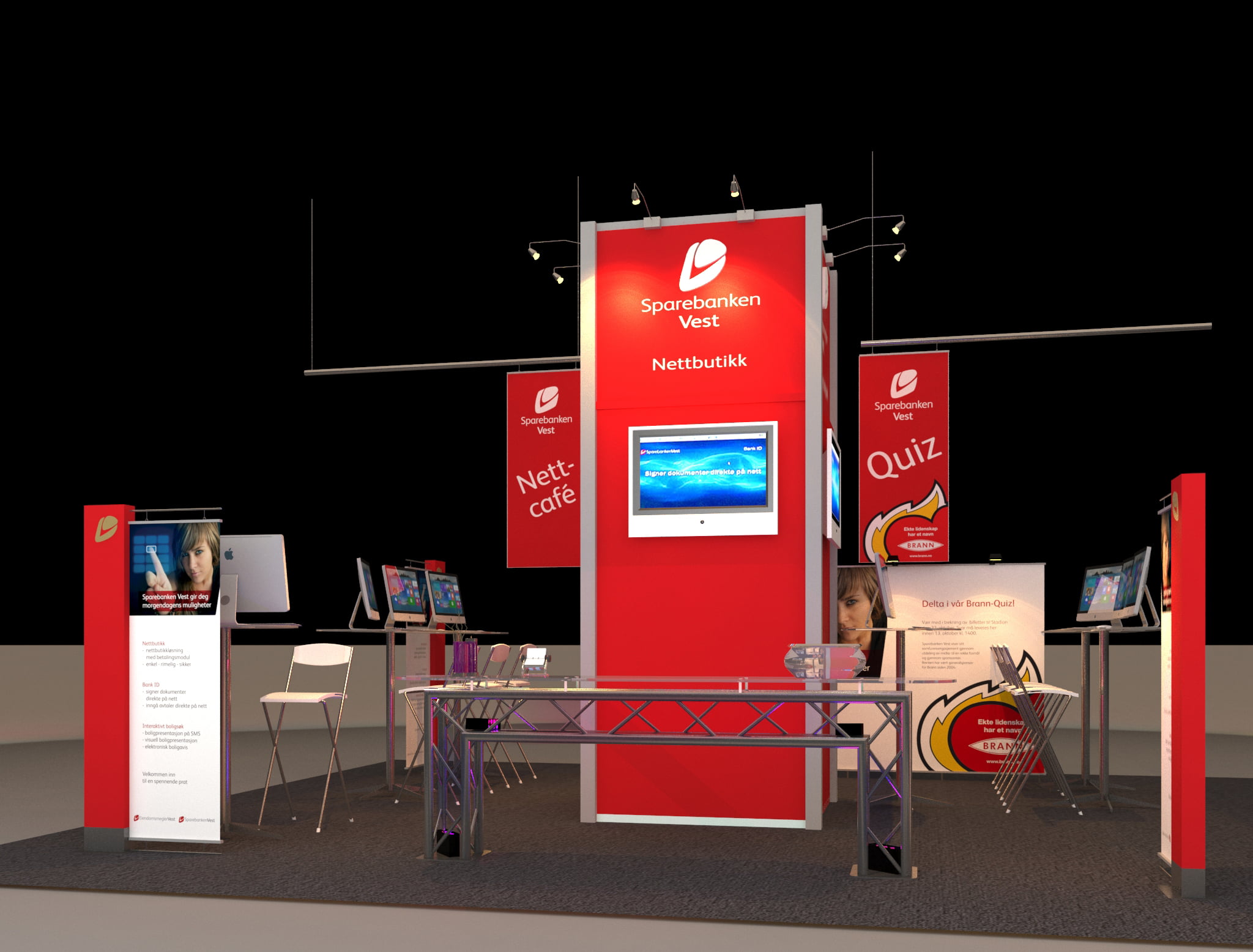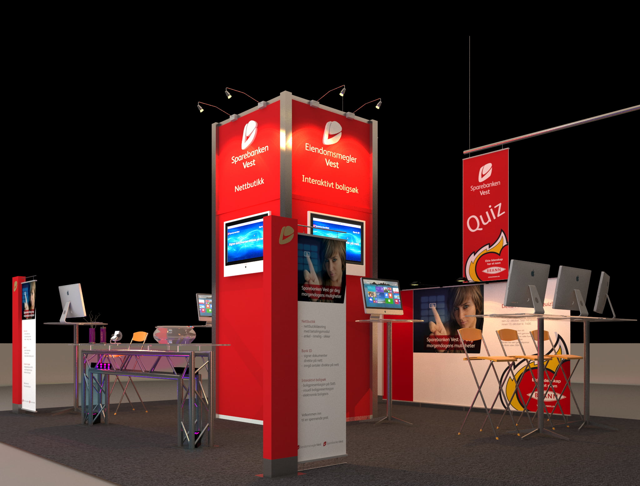 Ide, design, utvikling og produksjon av messestand til Sparebanken Vest i forbindelse med Teknologimesse i Grieghallen. Sparebanken Vest er en sammenslutning av mange banker i Hordaland og Sogn og Fjordane. Den største banken, Bergens Sparebank ble etablert i 1823, og Sparebanken Vest er således landets nest eldste bank.